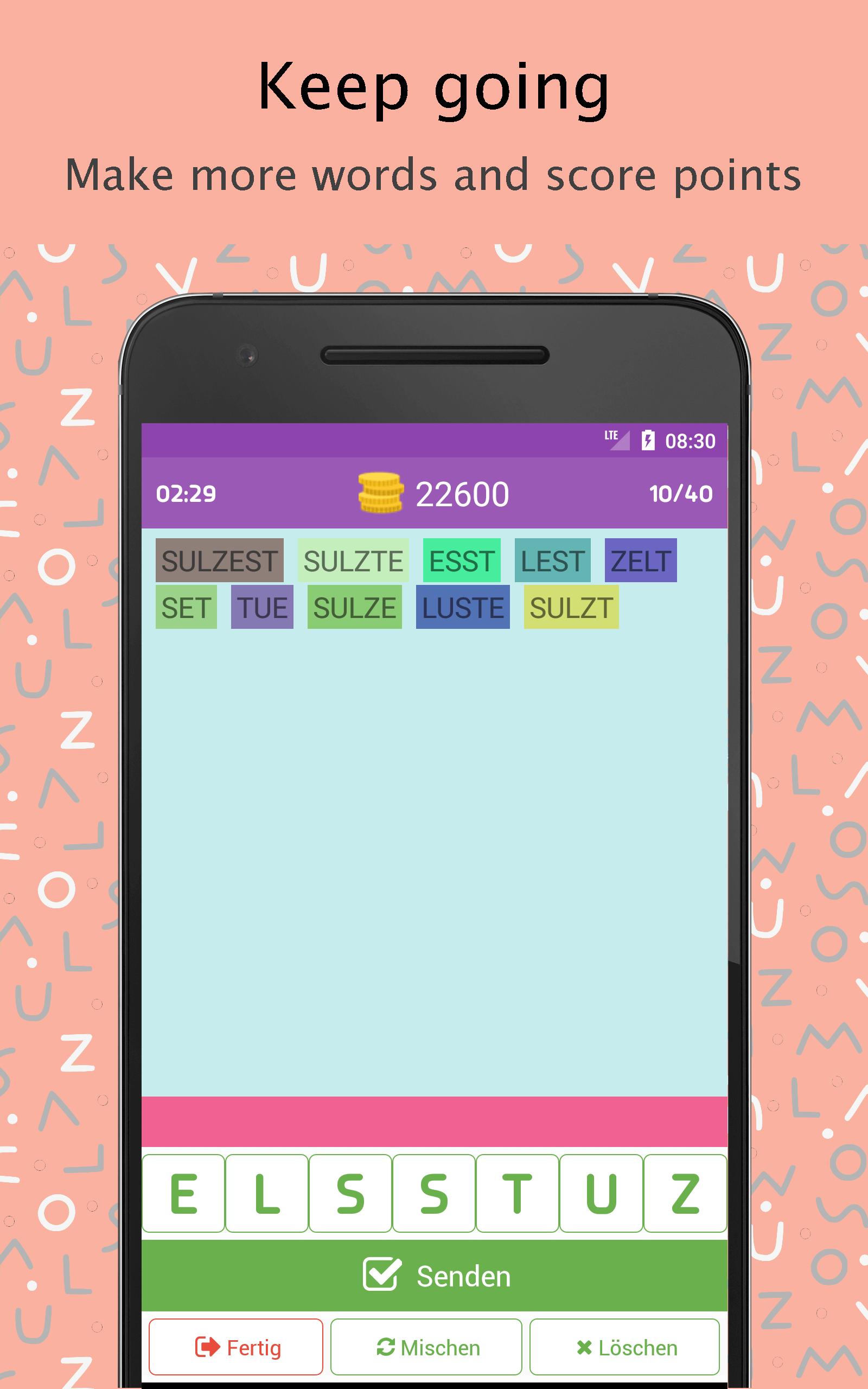 Используйте схватанные буквы, чтобы создать как можно больше слов! Слова добавляются в ответы, когда вы их делаете, и вы зарабатываете баллы за каждое добавленное слово. Дольше слово, больше очков, которые вы зарабатываете.